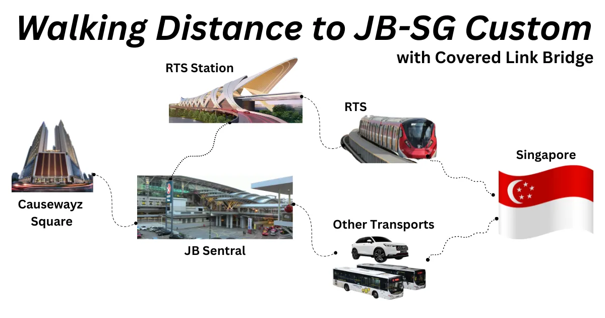 It is within approximately 5–8 minutes’ walking distance to JB CIQ, and it will be directly benefited by the upcoming RTS. For Singapore commuters, this is a walkable, high-demand location.